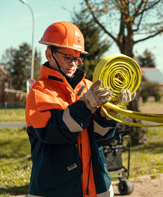Bei der Jugendfeuerwehr bekommst Du einen echten Einblick in die Welt der Feuerwehr. Du lernst den Umgang mit Feuerwehrtechnik und Geräten, übst den Umgang mit Technik und Geräten, erfährst, wie man im Team richtig anpackt, und darfst fast alles ausprobieren – vom Aufbau einer Wasserversorgung bis zum Bedienen spannender Gerätschaften. Nur echte Feuer bekämpfen wir (noch) nicht – dafür gibt’s spezielle Übungsattrappen. Außerdem kannst Du Dein Können bei Wettkämpfen oder dem Erwerb der Leistungsspange unter Beweis stellen.