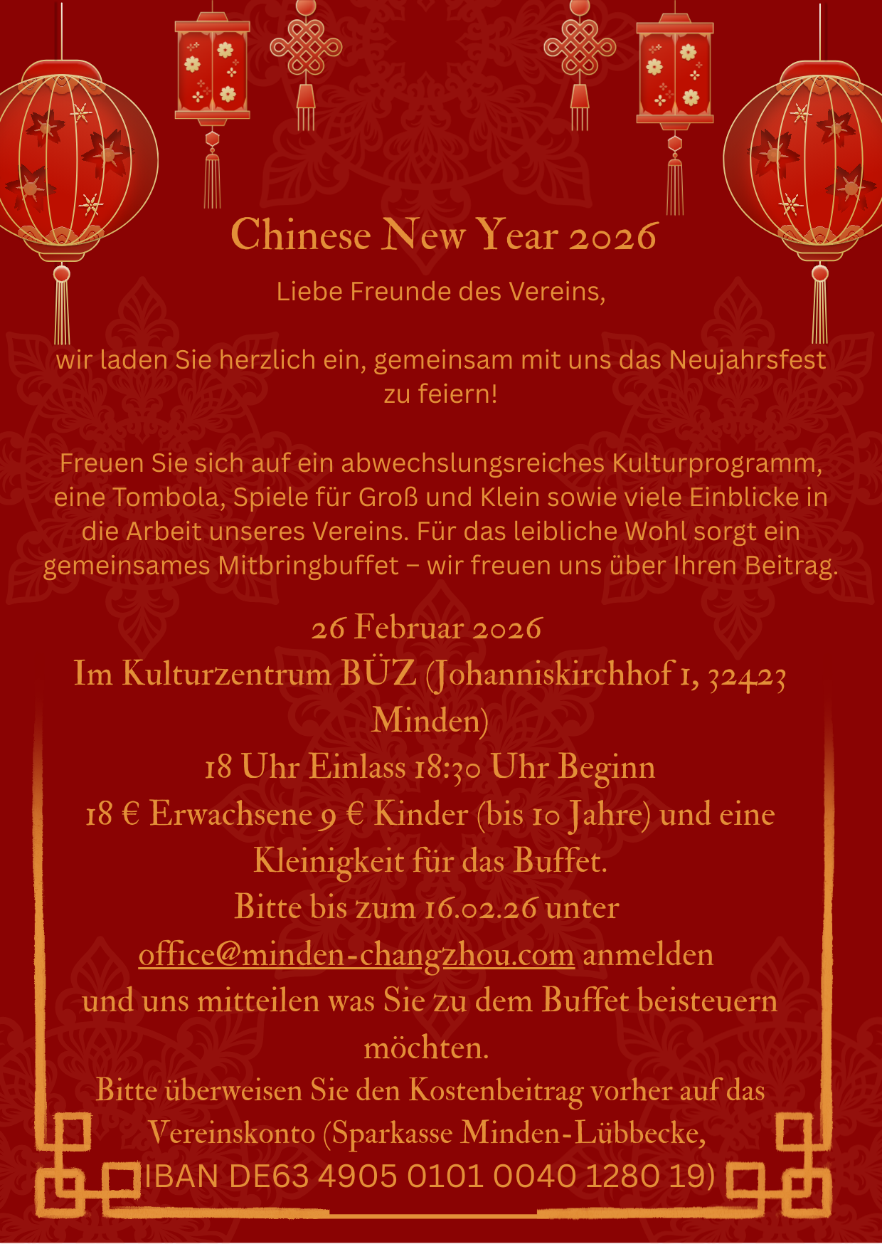 Einladung zur Feier des Chinesischen Neujahrsfests 2026